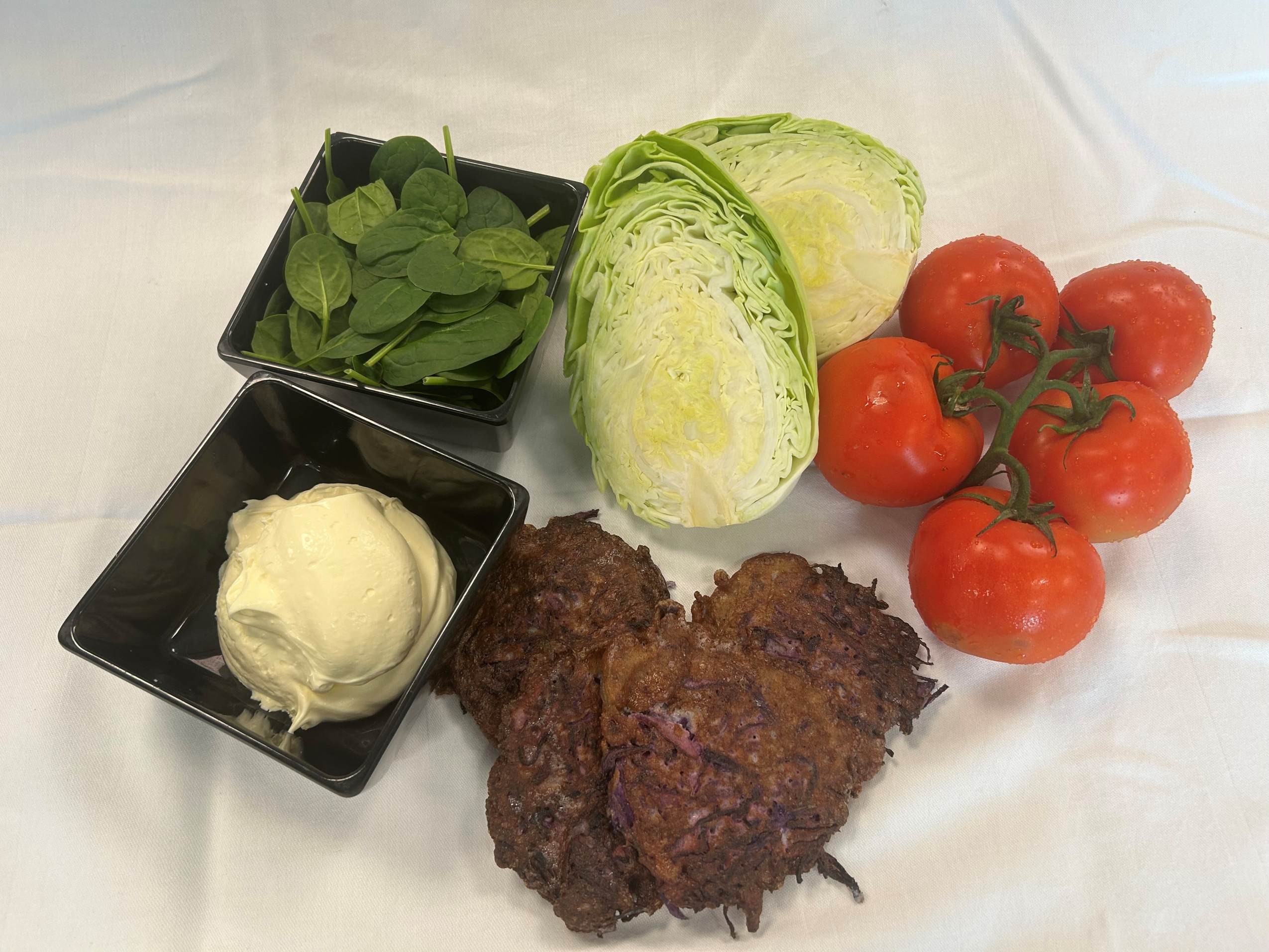 Pandekagerne kan også tilberedes i ovnen som kålfrittata ved 200 °C i ca. 20–25 minutter.