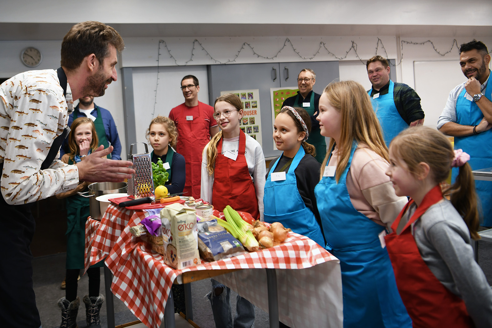 Vi snitter, rører og smager os gennem processen, og til sidst samles vi selvfølgelig om det bedste - at smage på maden, vi har lavet sammen.