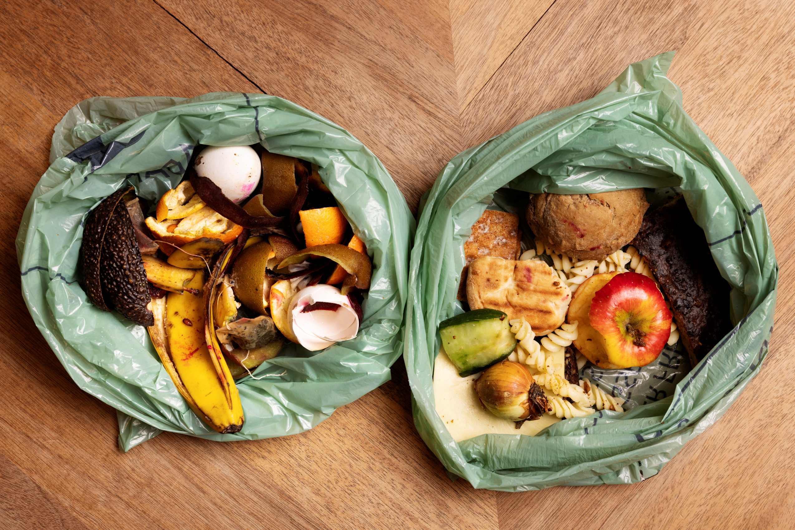 Du kan nemt undersøge, hvor meget madspild du har, og hvilke typer af mad, der ikke bliver spist op hjemme hos dig, ved at opdele dit madaffald i to af de grønne poser til madaffald. En pose til den mad, der kunne være blevet spist, og en pose med fx æbleskrog, ben og skræller, der er reelt affald.