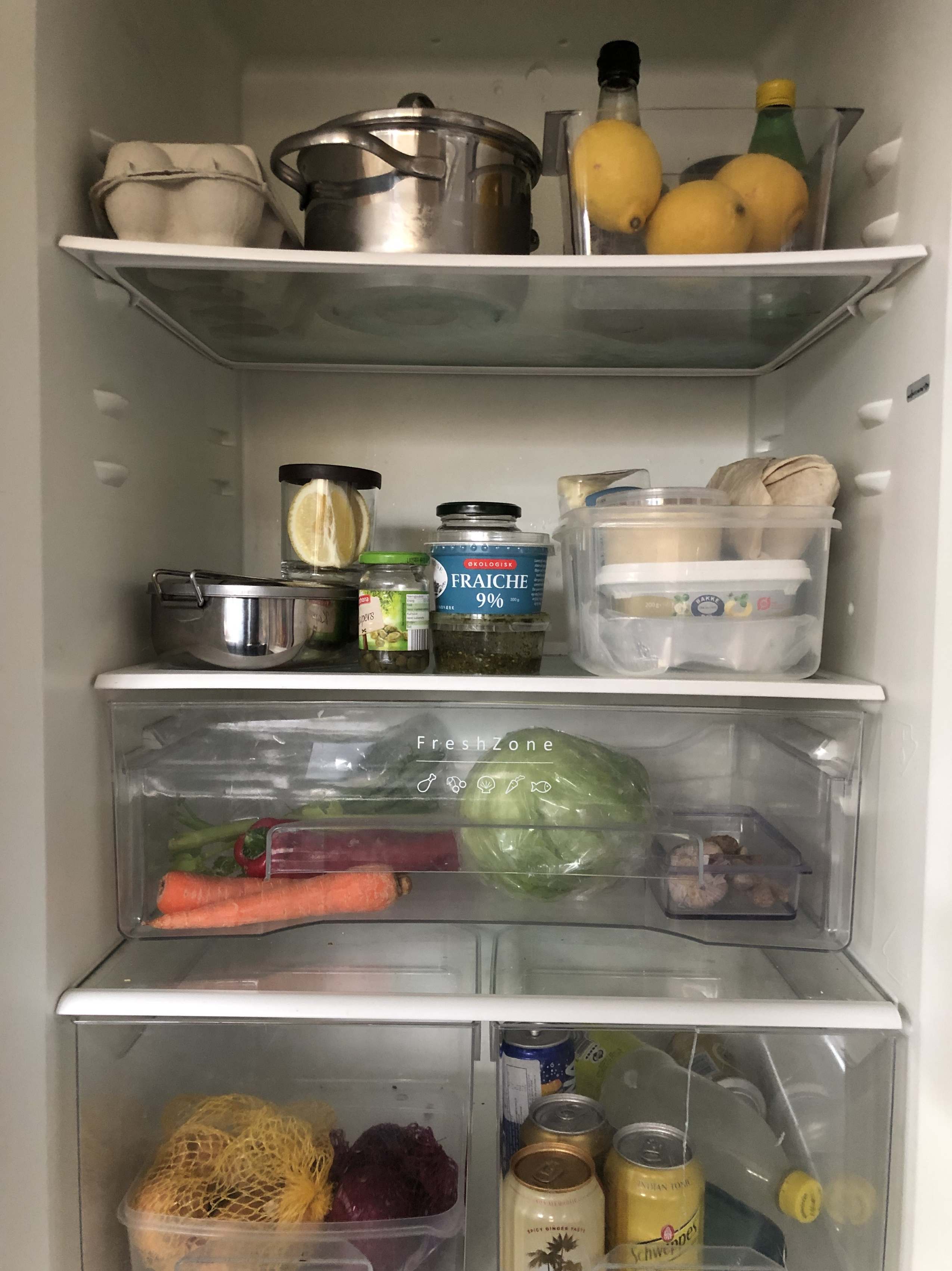 Måden du indretter dit køleskab på har betydning for, om du får spist al din mad. Det skal være nemt at få et hurtigt overblik over, det der er i køleskabet, og hvilke madvarer der snart skal spises. For at få et godt overblik kan du bruge gennemsigtige beholdere og flytte de fødevarer, der snart bliver for gamle, forrest i skabet.